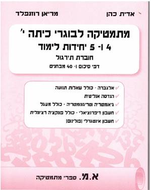 ü "מתמטיקה לבוגרי כיתה ט' רמה א' ורמה מוגברת" – חוברת תרגול.